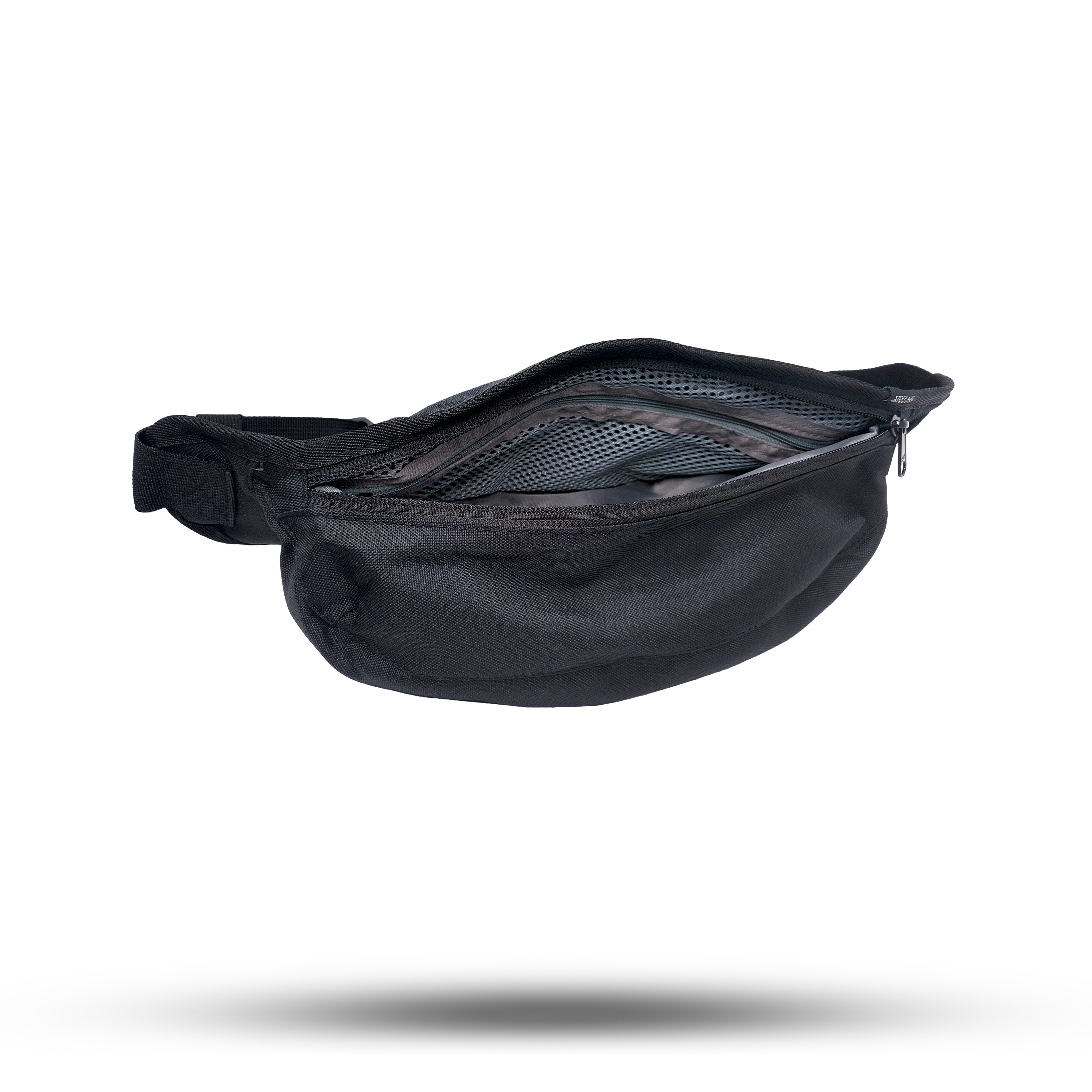 Neben der wirklich geräumigen Zip-Tasche vorne, hast Du innen nochmal eine weitere Tasche mit Mesh-Innenfutter. Und darin nochmal ein Fach mit Extra Reissverschluss. Für den Kram, den Du auf keinen Fall verpeilen darfst. Perso oder so.